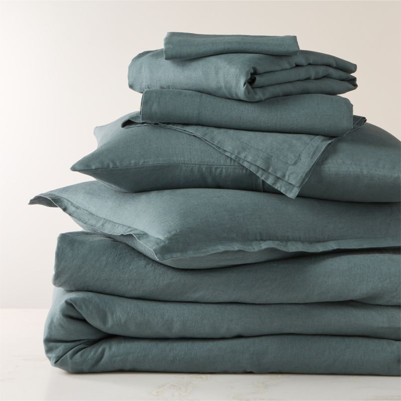 See in-stock & shipping info on CB2 Loading...CB2SKU 667955Classic EUROPEAN FLAX™-Certified Linen Faded Teal Queen Bedding SetClearance $388.97 reg. $599.00Group Gift0 of 1 purchasedBuy on CB2Contribute to Group Gift Fund