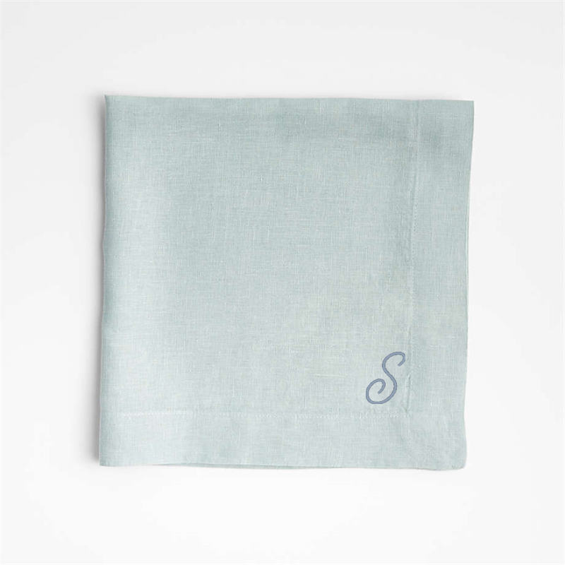 In stock and ready to ship Loading...Crate & BarrelSKU 543935Personalized Marin Quiet Blue EUROPEAN FLAX ™-Certified Linen Napkin, Set of 4$74.80includes $15 personalization feeShips free0 of 1 purchasedAdd to Cart