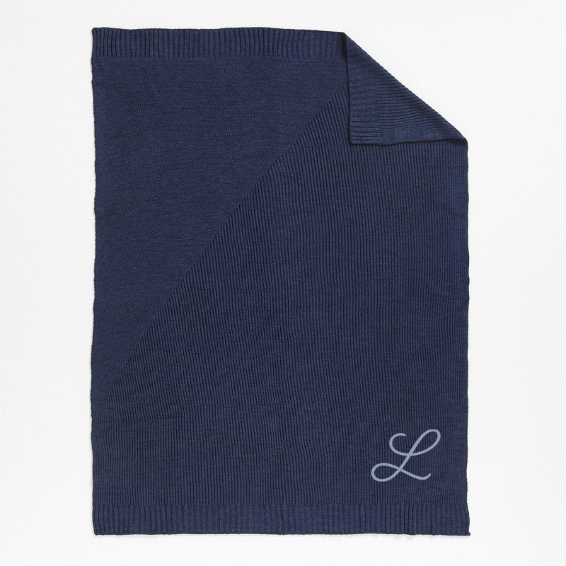 In stock and ready to ship Loading...Crate & BarrelSKU 577183Personalized Sweater Knit 70"x55" Deep Indigo Blue Throw Blanket$134.95includes $15 personalization feeShips free0 of 1 purchasedAdd to Cart