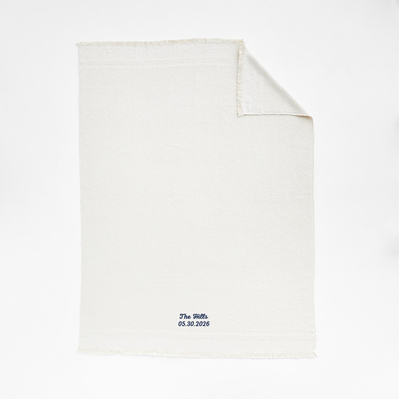 In stock and ready to ship Loading...Crate & BarrelSKU 540231Personalized Weekend Arctic Ivory Organic Cotton 70"x55" Fringe Throw Blanket$164.95includes $15 personalization feeShips free0 of 1 purchasedAdd to Cart