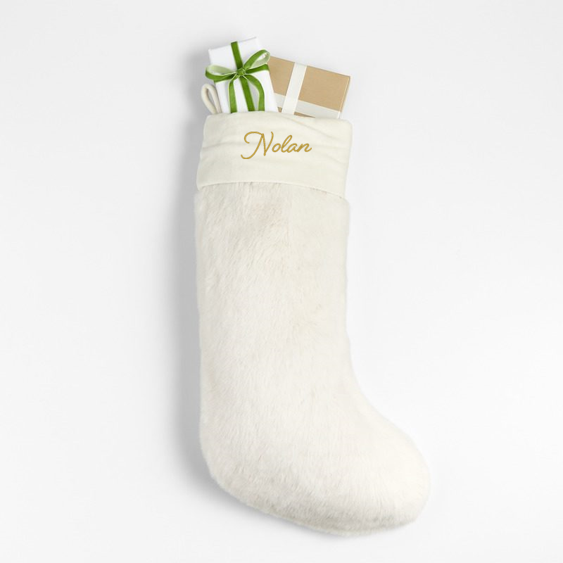 In stock and ready to ship Loading...Crate & BarrelSKU 103991Personalized Warm White Faux Fur Christmas Stocking$64.95includes $15 personalization feeShips free0 of 1 purchasedAdd to Cart