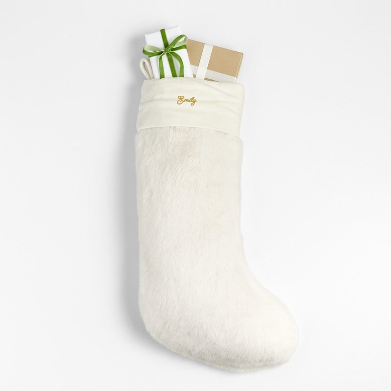 In stock and ready to ship Loading...Crate & BarrelSKU 103991Personalized Warm White Faux Fur Christmas StockingClearance $49.99 reg. $64.95includes $15 personalization feeFree Shipping Eligible0 of 1 purchasedAdd to Cart