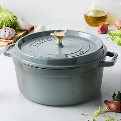In stock and ready to ship Loading...Crate & BarrelSKU 374217Staub ® x Daniel Humm Eucalyptus 4-Qt. Cocotte with Ginkgo Knob$419.90Ships free0 of 1 purchasedAdd to Cart