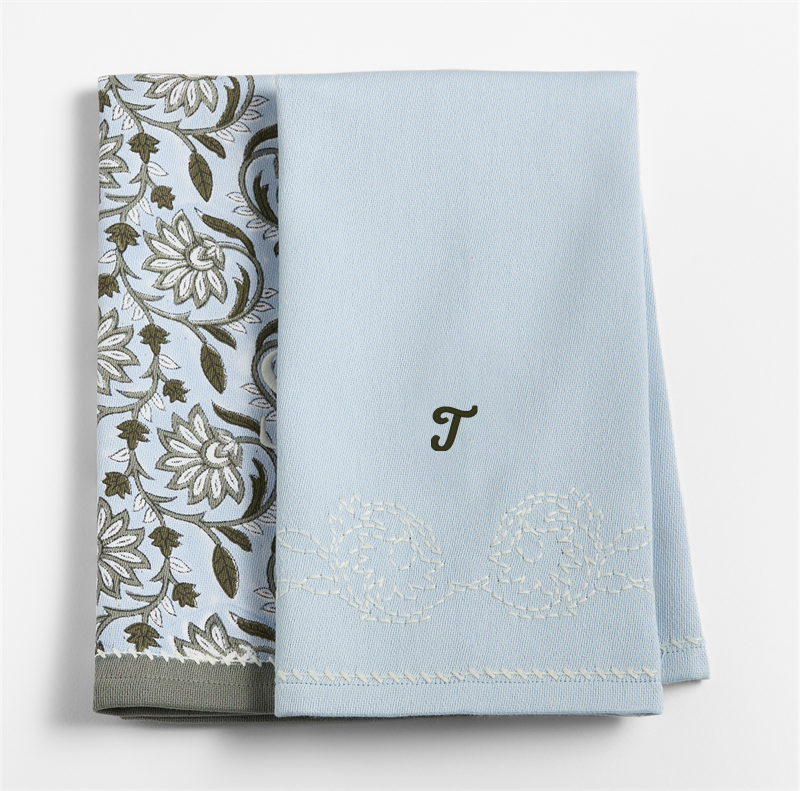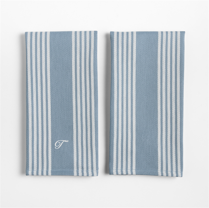 In stock and ready to ship Loading...Crate & BarrelSKU 427181Personalized Cuisine Harbor Blue with White Stripe Organic Cotton Kitchen Dish Towels, Set of 2$37.95includes $15 personalization feeFree Shipping Eligible0 of 1 purchasedAdd to Cart