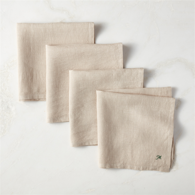 See in-stock & shipping info on CB2 Loading...CB2SKU 673123Personalized Bolt Smoked Green Linen Napkins Set of 4Set Savings $61.95 open stock $62.80includes $15 personalization fee0 of 1 purchasedBuy on CB2