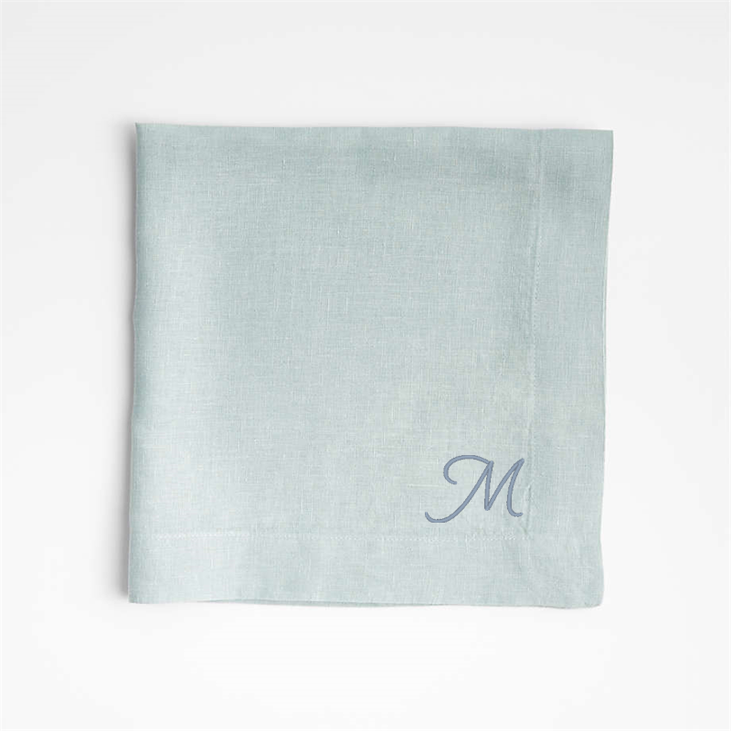 In stock and ready to ship Loading...Crate & BarrelSKU 543935Personalized Marin Quiet Blue EUROPEAN FLAX ™-Certified Linen Napkin, Set of 4$74.80includes $15 personalization feeShips free0 of 1 purchasedAdd to Cart