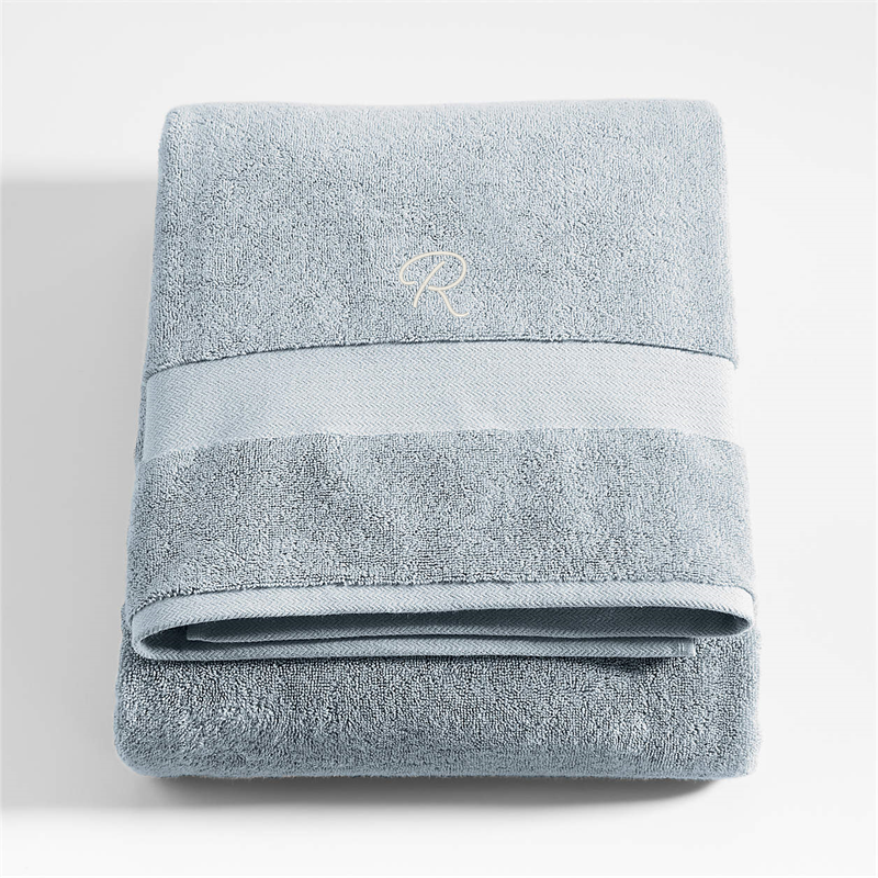 In stock and ready to ship Loading...Crate & BarrelSKU 218045Personalized Organic Turkish Cotton Mist Blue Bath Towel$50.95includes $16 personalization feeFree Ship Over $550 of 2 purchasedAdd to Cart