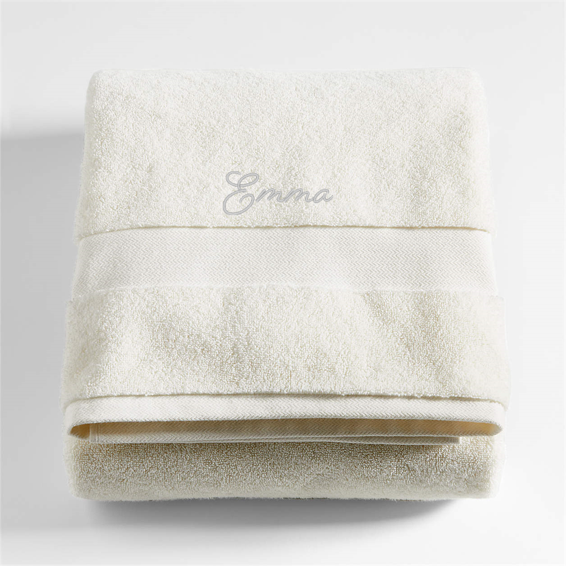 In stock and ready to ship Loading...Crate & BarrelSKU 587014Personalized Organic Turkish Cotton Ivory Bath Sheet$75.95includes $16 personalization feeEnds Today! Free Ship Over $990 of 1 purchasedAdd to Cart
