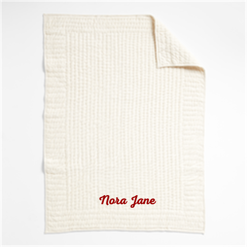 In stock and ready to ship Loading...Crate & KidsSKU 573168Personalized Baby's First Natural Organic Cotton Jersey Baby Crib Quilt$159.95includes $15 personalization feeFree Shipping Eligible0 of 1 purchasedAdd to Cart