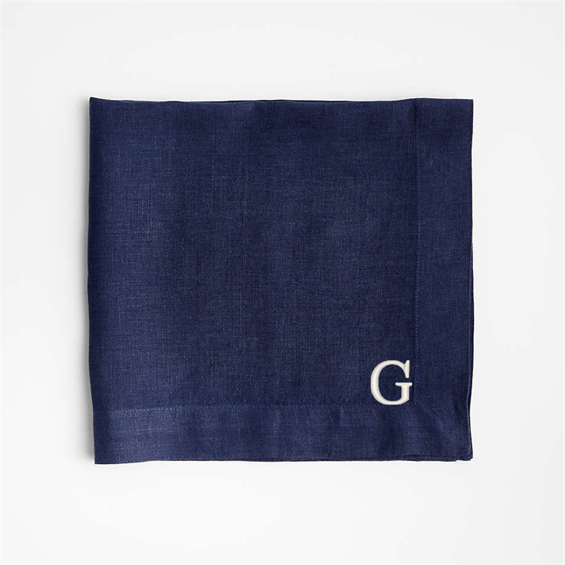 In stock and ready to ship Loading...Crate & BarrelSKU 544184Personalized Marin Indigo EUROPEAN FLAX â„¢-Certified Linen Napkins, Set of 8$149.60includes $30 personalization feeShips free0 of 1 purchasedAdd to Cart
