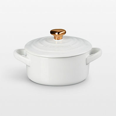 In stock and ready to ship Loading...Crate & BarrelSKU 473209Le Creuset ® 8-oz. White Mini Cocotte with Gold Heart Knob$31.95Free Shipping Eligible0 of 2 purchasedAdd to Cart
