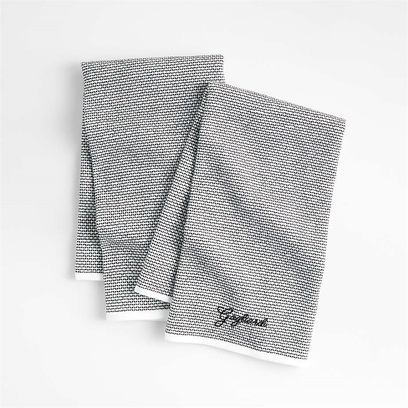 In stock and ready to ship Loading...Crate & BarrelSKU 271288Personalized Textured Terry Black Organic Cotton Kitchen Towels, Set of 2$37.95includes $15 personalization feeFree Shipping Eligible0 of 1 purchasedAdd to Cart
