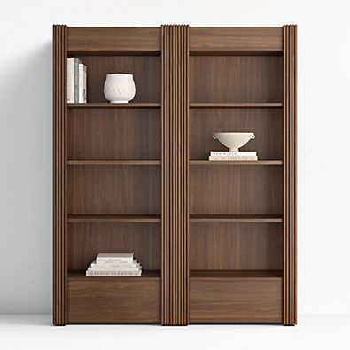 In stock and ready for delivery to ZIP code 08071 Loading...Crate & BarrelSKU 472449Siena 68" Walnut Wood 4-Shelf Storage Bookcase with Drawer, Set of 2Set Savings $2,998.00 open stock $3,198.000 of 1 purchasedAdd to Cart