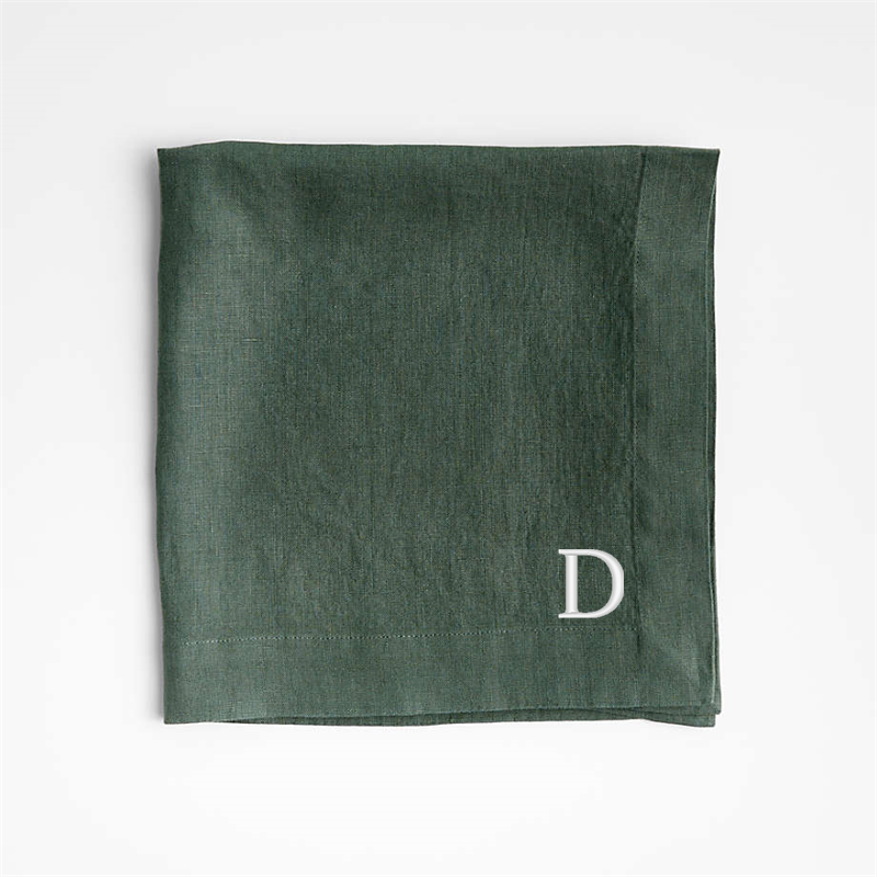 In stock and ready to ship Loading...Crate & BarrelSKU 543892Personalized Marin Pine Green EUROPEAN FLAX ™-Certified Linen Napkin, Set of 4$74.80includes $15 personalization feeFree Shipping Eligible0 of 1 purchasedAdd to Cart