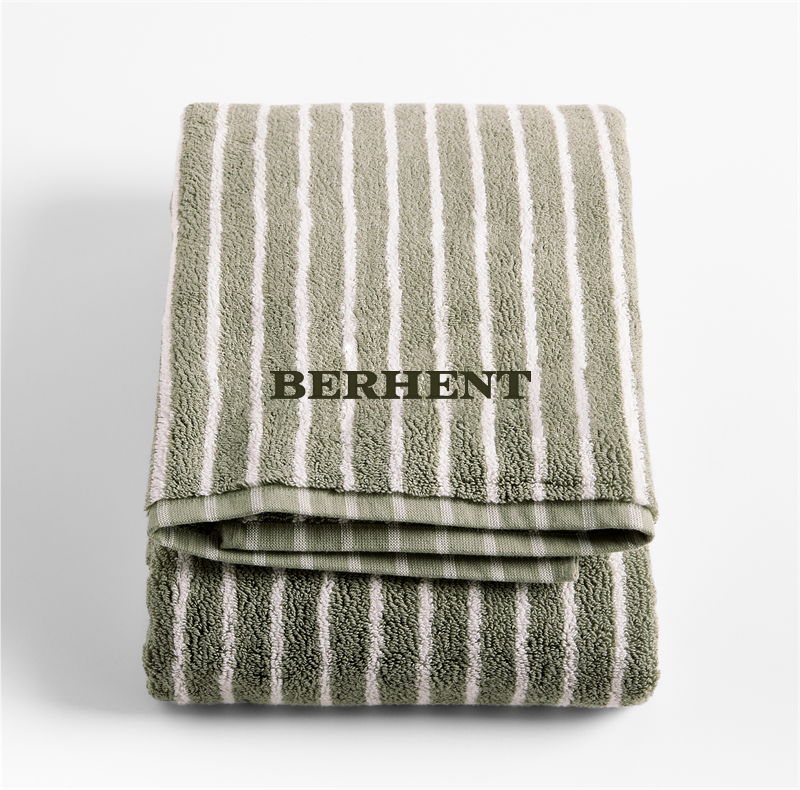 Purchase now and we'll ship when it's available. Estimated in late March 2026.Loading...Crate & BarrelSKU 626960Personalized Organic Turkish Cotton Shadow Sage and Pampas Ivory Stripe Bath Towel$59.95includes $15 personalization feeShips free0 of 2 purchasedAdd to Cart