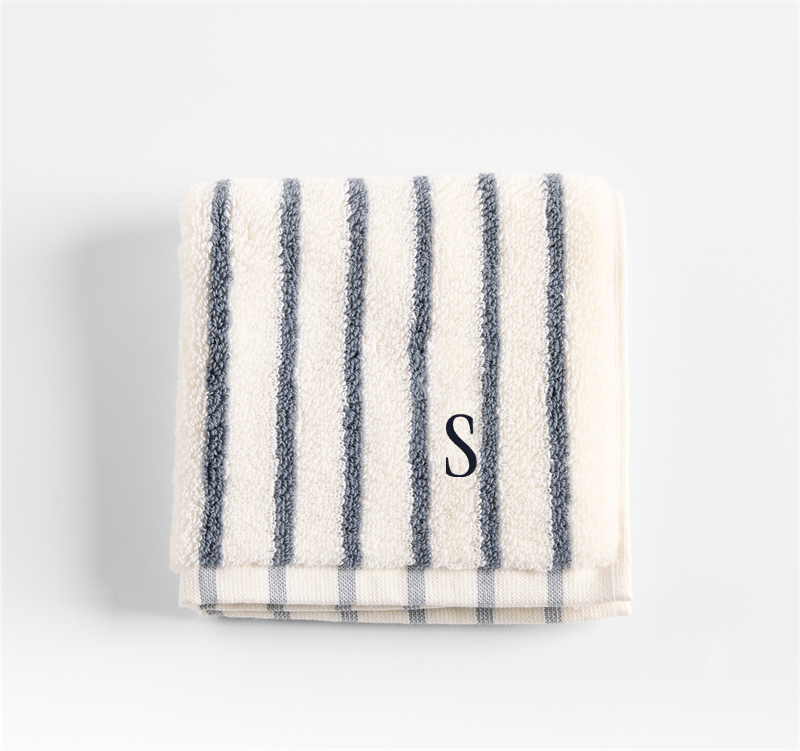 In stock and ready to ship. Loading...Crate & BarrelSKU 627060Personalized Organic Turkish Cotton Pampas Ivory and Evening Blue Stripe Hand Towel$44.95includes $15 personalization feeShips free0 of 2 purchasedAdd to Cart