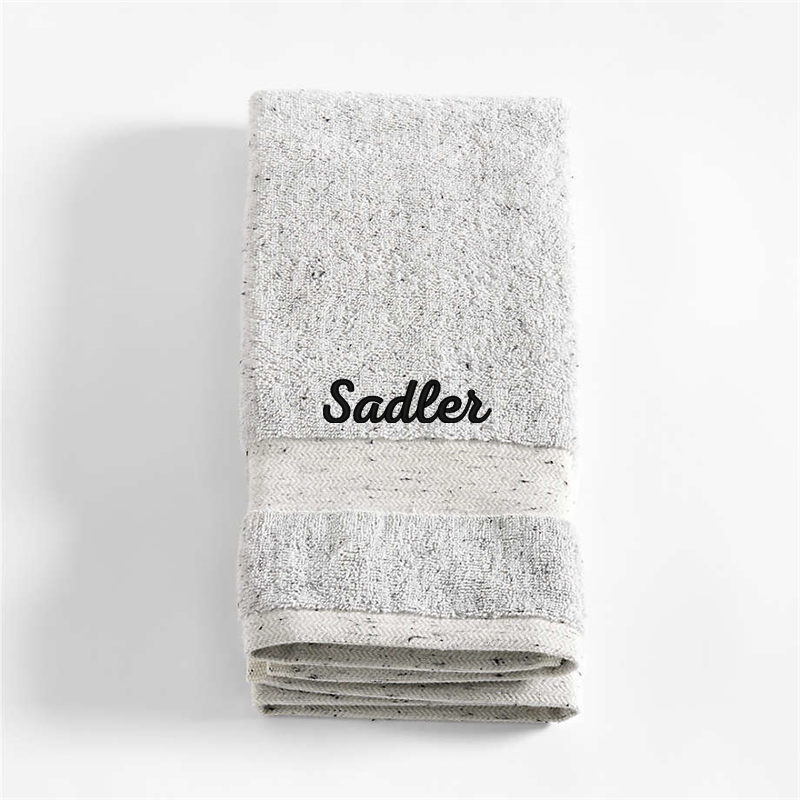 In stock and ready to ship Loading...Crate & BarrelSKU 424411Personalized Organic Turkish Cotton Grey Fleck Hand Towel$44.95includes $15 personalization feeShips free0 of 2 purchasedAdd to Cart