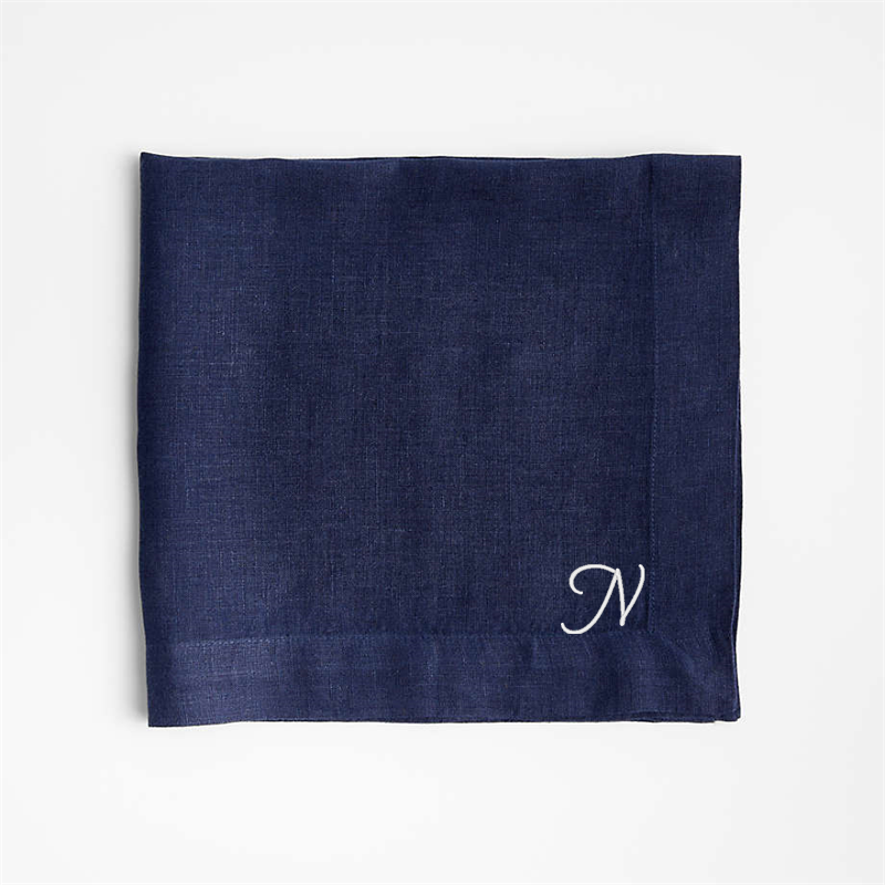 In stock and ready to ship Loading...Crate & BarrelSKU 544184Personalized Marin Indigo EUROPEAN FLAX ™-Certified Linen Napkins, Set of 8$149.60includes $30 personalization feeShips free0 of 1 purchasedAdd to Cart