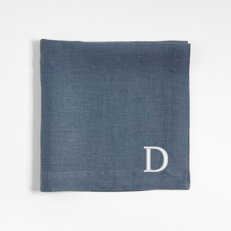 In stock and ready to ship Loading...Crate & BarrelSKU 374424Personalized Marin Slate Blue EUROPEAN FLAX ™-Certified Linen Napkin, Set of 8$149.60includes $30 personalization feeShips free0 of 1 purchasedAdd to Cart
