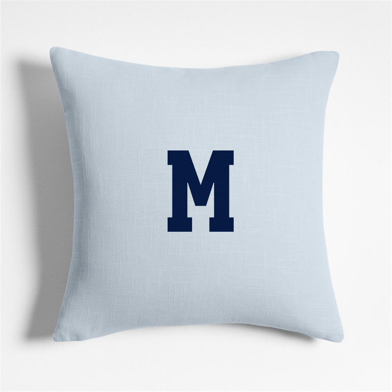 In stock and ready to ship Loading...Crate & BarrelSKU 655162Personalized Organic Cotton Monogrammable 20"x20" Sky Blue Throw Pillow with Down-Alternative InsertClearance $45.47 reg. $55.00includes $16 personalization feeShips free0 of 2 purchasedAdd to Cart