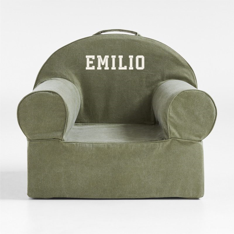 Purchase now and we'll ship when it's available. Estimated in late March 2026.Loading...Crate & KidsSKU 401023Personalized Large Cyprus Green Organic Cotton Kids Lounge Nod Chair$174.00includes $15 personalization feeFree Shipping Eligible0 of 1 purchasedAdd to Cart