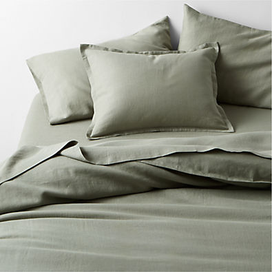 In stock and ready to ship Loading...Crate & BarrelSKU 379757Favorite Washed Organic Cotton Shadow Sage Green Queen Bed Sheet Set$169.95Ships free0 of 1 purchasedAdd to Cart
