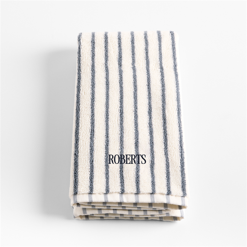 In stock and ready to ship Loading...Crate & BarrelSKU 627060Personalized Organic Turkish Cotton Pampas Ivory and Evening Blue Stripe Hand Towel$44.95includes $15 personalization feeShips free0 of 1 purchasedAdd to Cart
