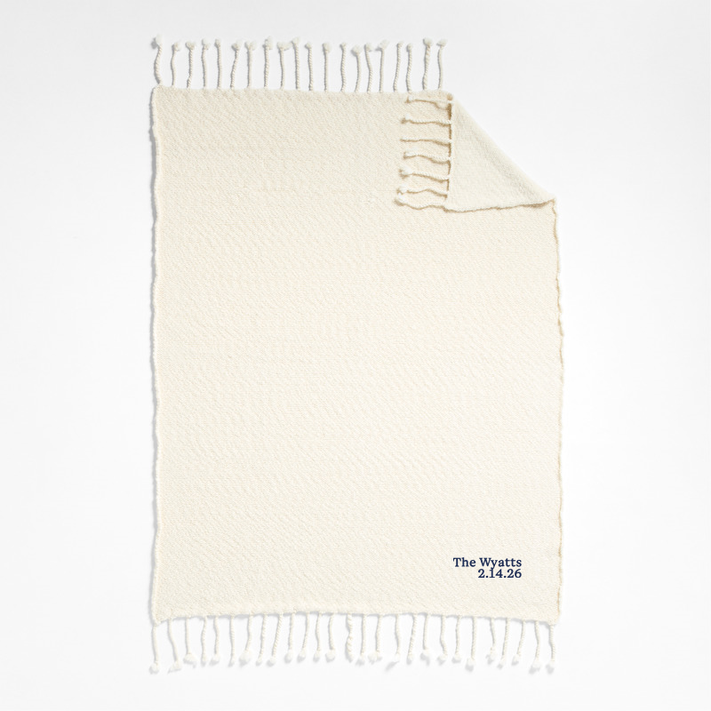 In stock and ready to ship Loading...Crate & BarrelSKU 236842Personalized Chunky Wool Fringe Knit 70"x55" Travertine Beige Throw BlanketClearance $129.99 reg. $184.95includes $15 personalization feeFree Ship Over $590 of 1 purchasedAdd to Cart
