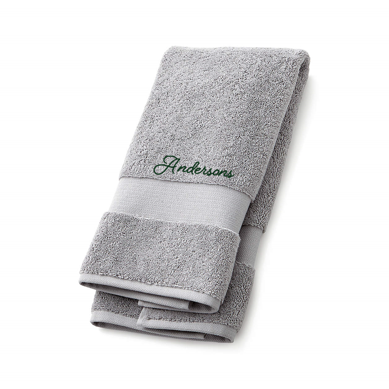 In stock and ready to ship Loading...Crate & BarrelSKU 321815Personalized Organic Turkish Cotton Grey Hand Towel$39.95includes $15 personalization feeShips free0 of 1 purchasedAdd to Cart