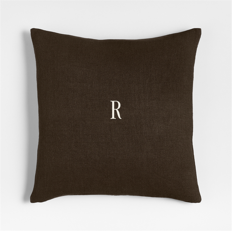 In stock and ready to ship Loading...Crate & BarrelSKU 179504Personalized Relaxed Linen Layering 20"x20" Deep Brown Throw Pillow with Down-Alternative Insert$116.95includes $15 personalization feeShips free0 of 2 purchasedAdd to Cart