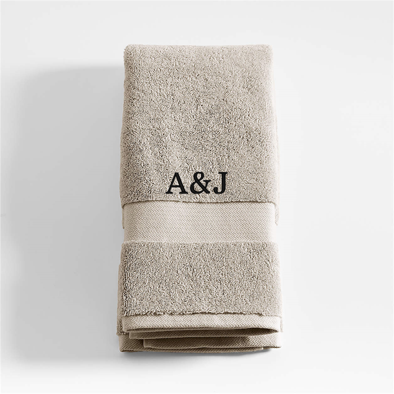 In stock and ready to ship Loading...Crate & BarrelSKU 218135Personalized Organic Turkish Cotton Taupe Hand Towel$39.95includes $15 personalization feeShips free0 of 2 purchasedAdd to Cart