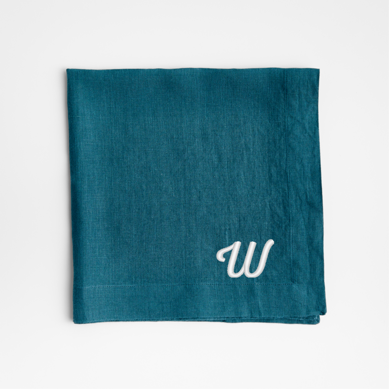 In stock and ready to ship Loading...Crate & BarrelSKU 223362Personalized Marin Sea Blue EUROPEAN FLAX â„¢-Certified Linen Napkin$29.95includes $15 personalization feeShips free0 of 8 purchasedAdd to Cart