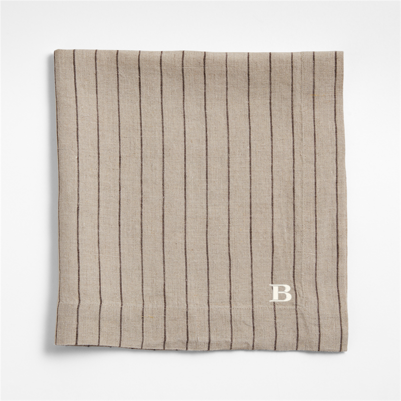 In stock and ready to ship Loading...Crate & BarrelSKU 601794Personalized Marin Natural and Earth Brown EUROPEAN FLAX ™-Certified Linen Striped Napkin$29.95includes $15 personalization feeShips free0 of 4 purchasedAdd to Cart