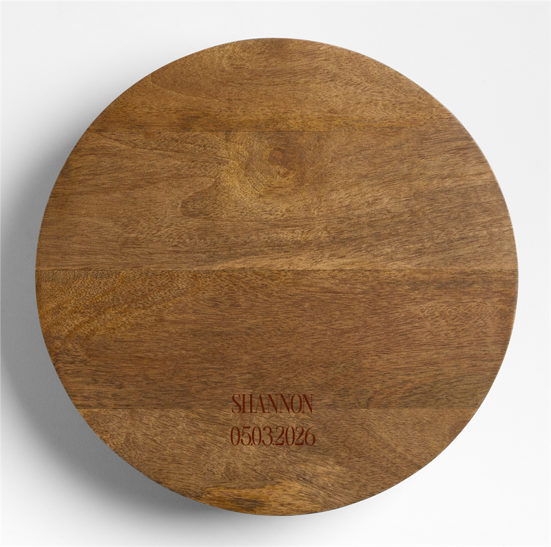 In stock and ready to ship Loading...Crate & BarrelSKU 633584Personalized Orchard Wooden 14" Round Footed Serve BoardSale $62.95 reg. $74.95includes $15 personalization feeShips free0 of 1 purchasedAdd to Cart