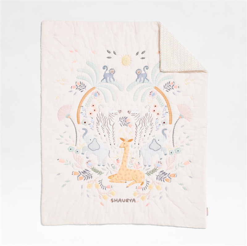 In stock and ready to ship Loading...Crate & KidsSKU 104210Personalized Sweet Savannah 100% Organic Cotton Baby Crib Quilt$174.95includes $15 personalization feeShips freeGroup Gift0 of 1 purchasedAdd to CartContribute to Group Gift Fund