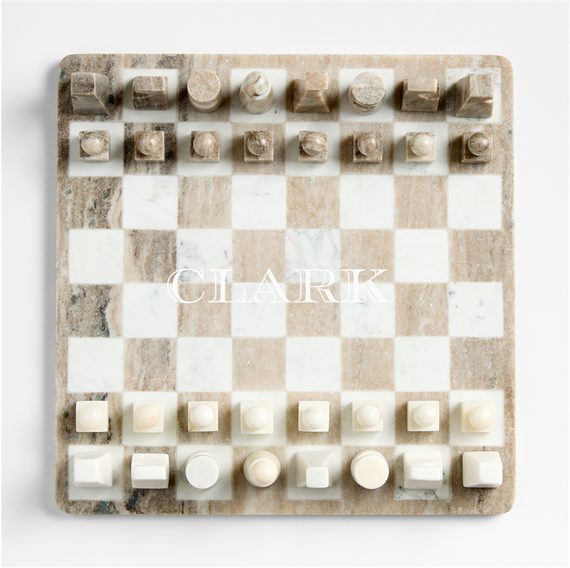This item is in high demand and may take longer than usual to arrive. Estimated in early April 2026.Loading...Crate & BarrelSKU 295360Personalized Marble Post Modern Chess Game$314.95includes $15 personalization feeFree Shipping Eligible0 of 1 purchasedAdd to Cart