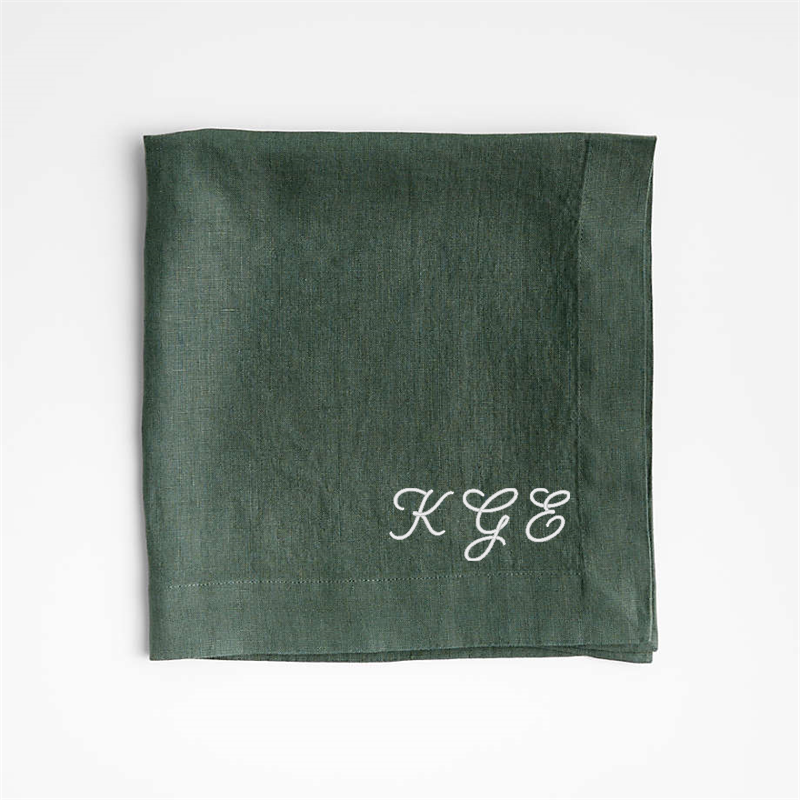 In stock and ready to ship Loading...Crate & BarrelSKU 544333Personalized Marin Pine Green EUROPEAN FLAX ™-Certified Linen Napkin, Set of 8$149.60includes $30 personalization feeShips free0 of 1 purchasedAdd to Cart