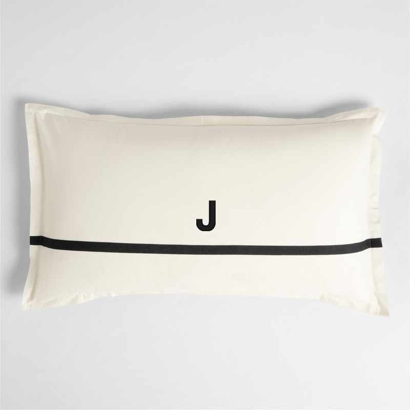 In stock and ready to ship Loading...Crate & BarrelSKU 583783Personalized Favorite Organic Cotton Percale Tuxedo Stripe Ink Black King Bed Pillow Sham$84.95includes $15 personalization feeShips free0 of 2 purchasedAdd to Cart