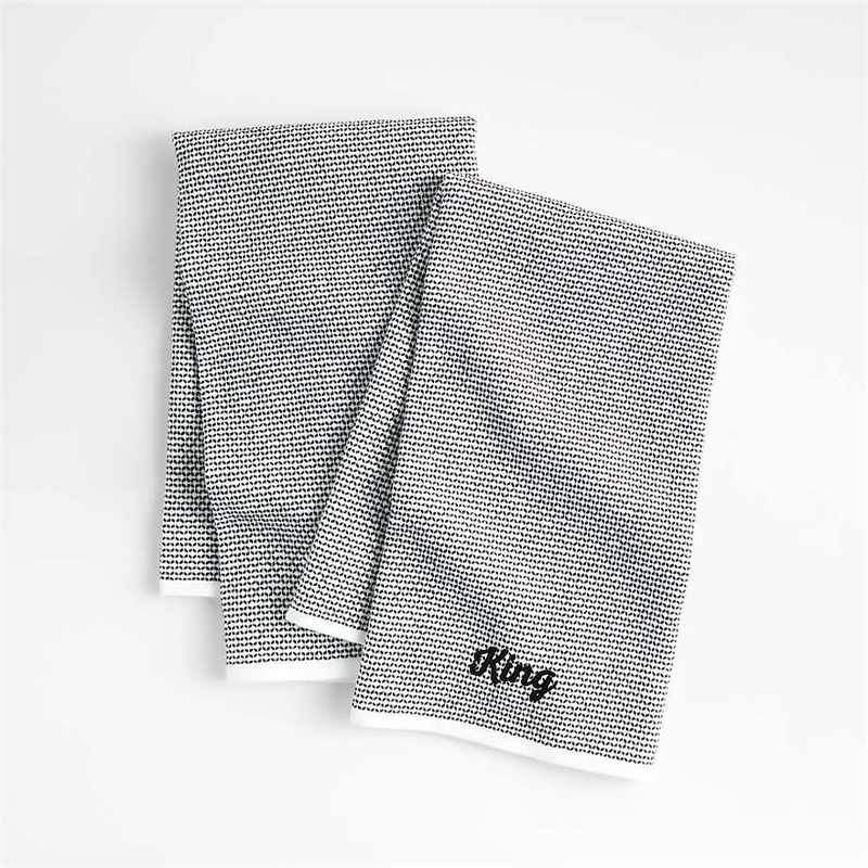 In stock and ready to ship Loading...Crate & BarrelSKU 271288Personalized Textured Terry Black Organic Cotton Kitchen Towels, Set of 2$37.95includes $15 personalization feeFree Shipping Eligible0 of 1 purchasedAdd to Cart