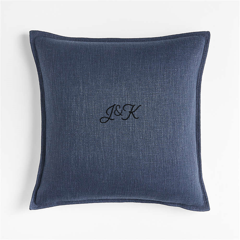 No longer available online. Loading...Crate & BarrelSKU 319644Personalized Indigo 20"x20" Laundered Linen Throw Pillow with Down-Alternative InsertClearance $57.97 reg. $85.95includes $16 personalization feeFree Shipping Eligible0 of 4 purchasedAdd to Cart