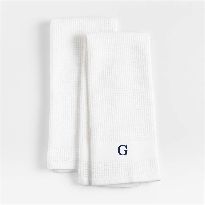 In stock and ready to ship Loading...Crate & BarrelSKU 493386Personalized Waffle-Terry White Organic Cotton Kitchen Towels, Set of 2$37.95includes $15 personalization feeFree Shipping Eligible0 of 1 purchasedAdd to Cart