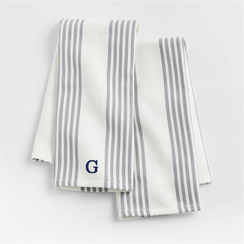 In stock and ready to ship Loading...Crate & BarrelSKU 463979Personalized Cuisine White with Grey Stripe Organic Cotton Dish Towels, Set of 2$37.95includes $15 personalization feeFree Shipping Eligible0 of 1 purchasedAdd to Cart
