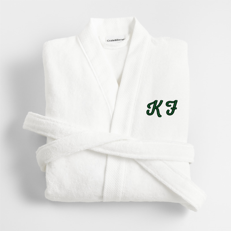 Purchase now and we'll ship when it's available. Estimated in mid January 2026.Loading...Crate & BarrelSKU 569603Personalized Organic Turkish Cotton Crisp White Bath Robe S/M$114.95includes $15 personalization feeFree Shipping Eligible0 of 1 purchasedAdd to Cart