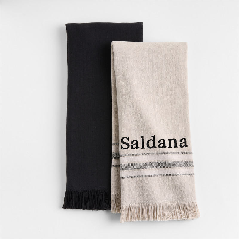 In stock and ready to ship Loading...Crate & BarrelSKU 340035Personalized Craft Ink Black Organic Cotton Dish Towels, Set of 2$44.95includes $15 personalization feeFree Shipping Eligible0 of 1 purchasedAdd to Cart