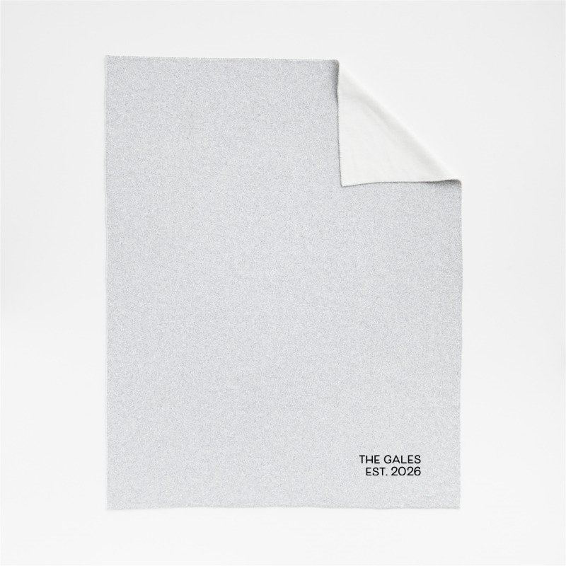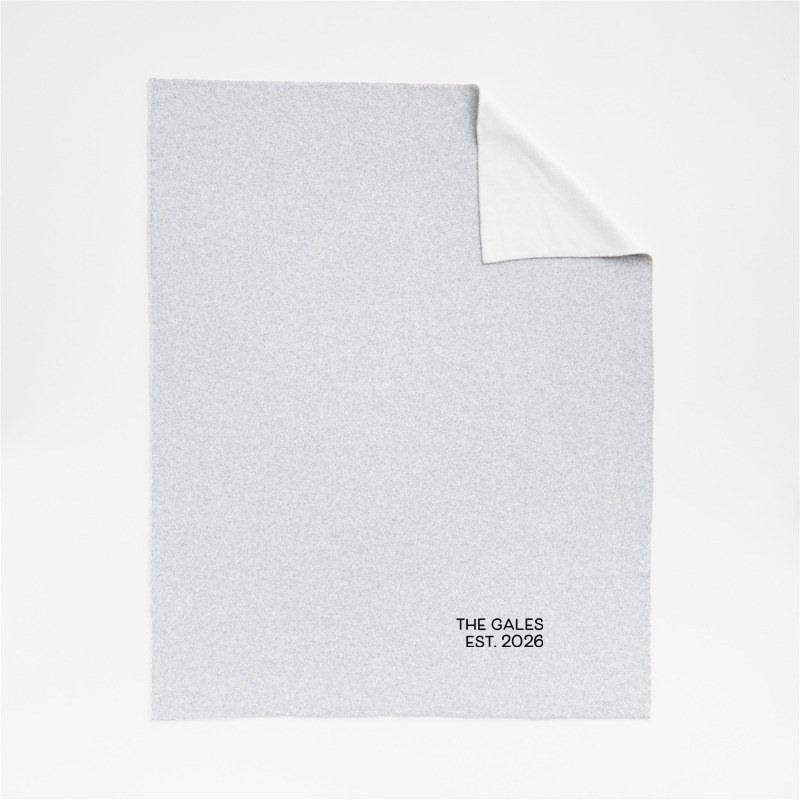 In stock and ready to ship Loading...Crate & BarrelSKU 531795Personalized Alpine Cozy Ivory and Grey Reversible 70"x55" Throw Blanket$134.95includes $15 personalization feeShips free0 of 1 purchasedAdd to Cart