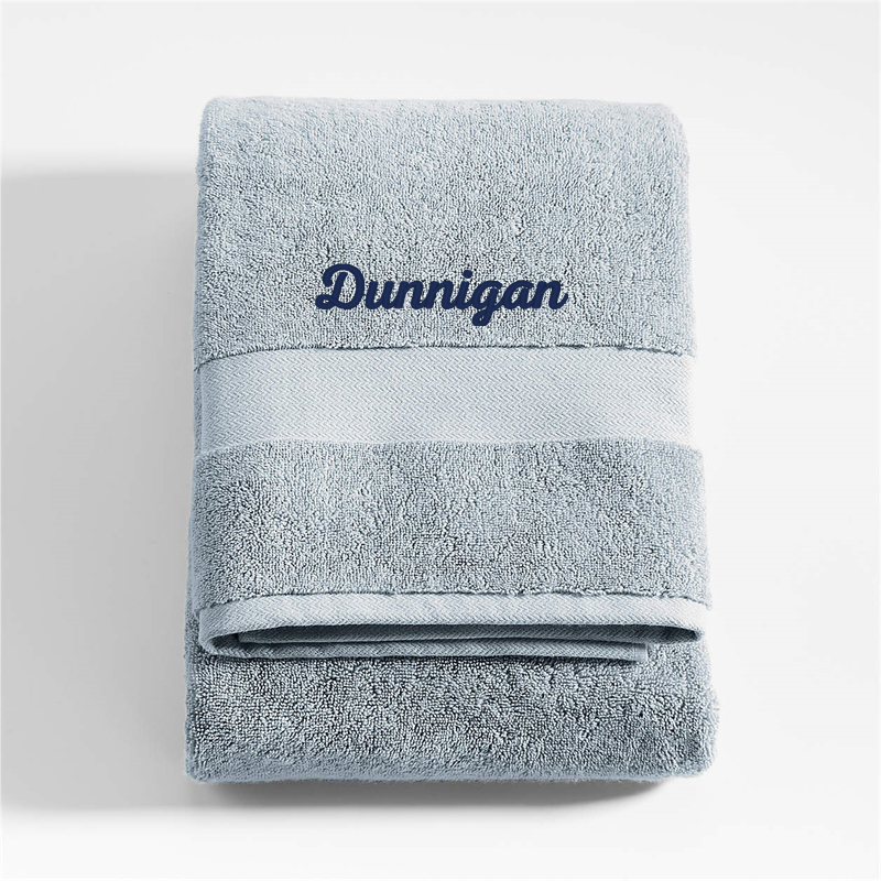 In stock and ready to ship Loading...Crate & BarrelSKU 218045Personalized Organic Turkish Cotton Mist Blue Bath Towel$49.95includes $15 personalization feeShips free0 of 6 purchasedAdd to Cart
