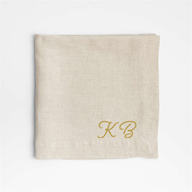 In stock and ready to ship Loading...Crate & BarrelSKU 544290Personalized Marin Natural EUROPEAN FLAX ™-Certified Linen Napkin, Set of 8$149.60includes $30 personalization feeShips free0 of 8 purchasedAdd to Cart