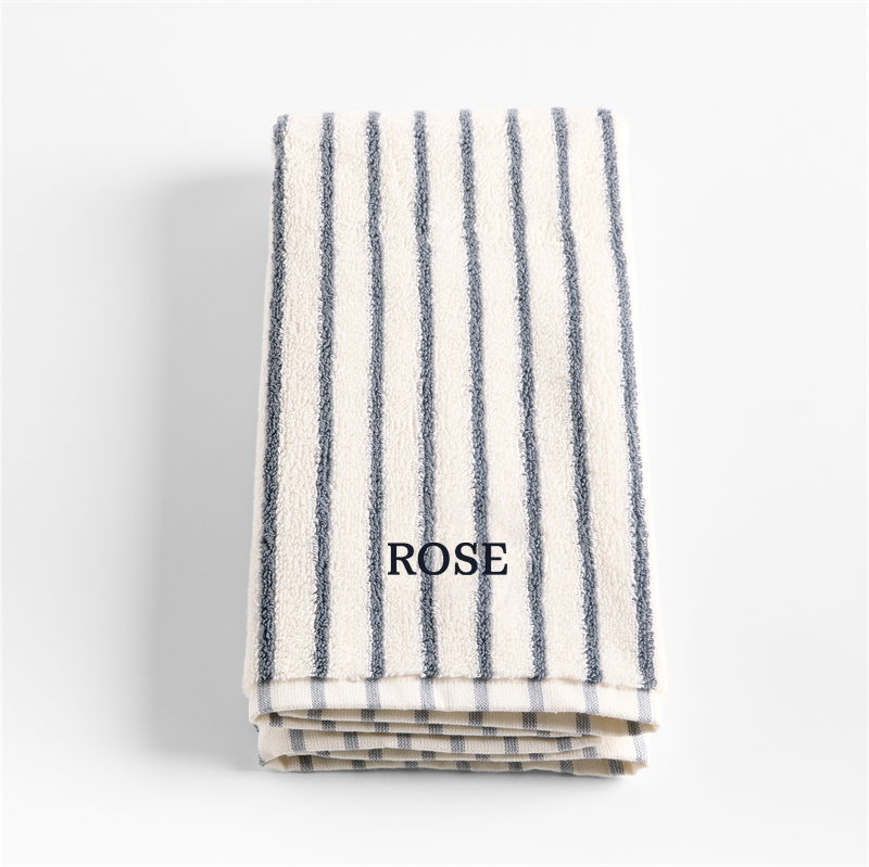 Purchase now and we'll ship when it's available. This item is currently on backorder.Loading...Crate & BarrelSKU 627060Personalized Organic Turkish Cotton Pampas Ivory and Evening Blue Stripe Hand Towel$44.95includes $15 personalization feeShips free0 of 2 purchasedAdd to Cart