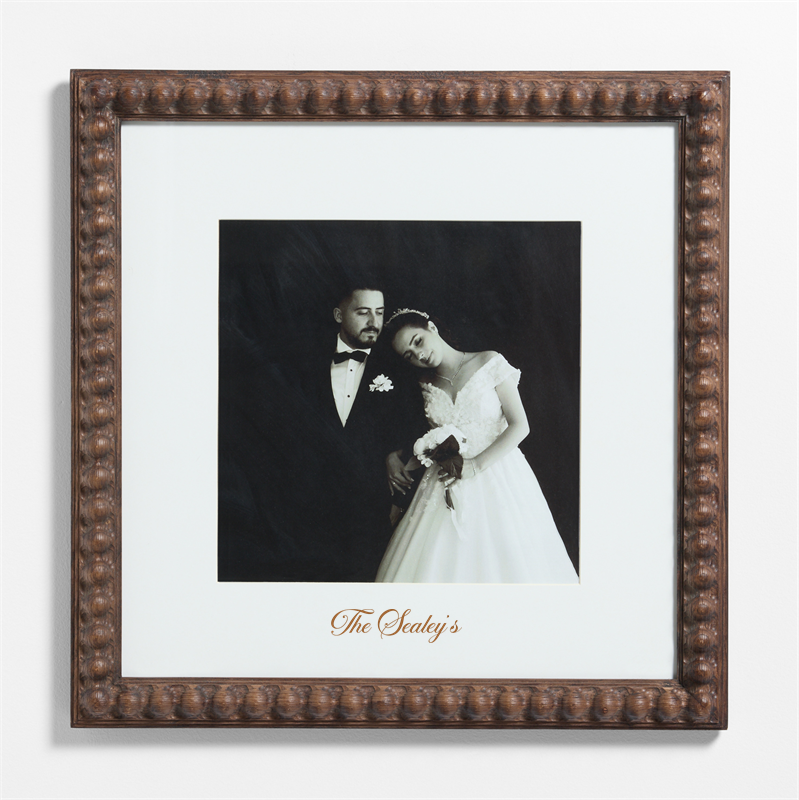 Purchase now and we'll ship when it's available. Estimated in mid April 2026.Loading...Crate & BarrelSKU 292579Personalized Elmhurst Beaded Walnut Wood 11x11 Wall Picture Frame with Interchangeable Mats$174.00includes $15 personalization feeFree Shipping Eligible0 of 1 purchasedAdd to Cart