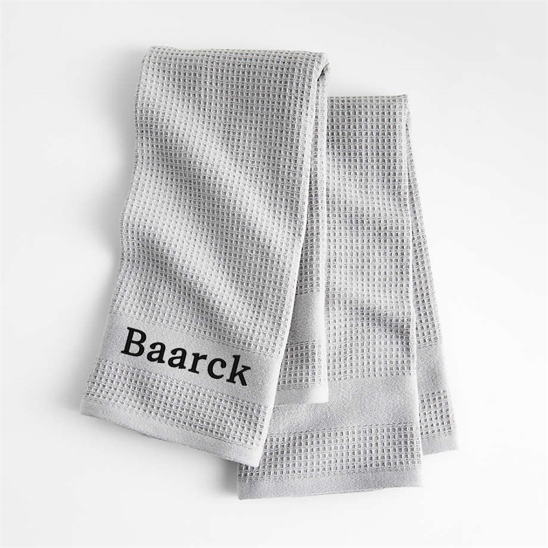 In stock and ready to ship Loading...Crate & BarrelSKU 493346Personalized Waffle-Terry Alloy Grey Organic Cotton Kitchen Towels, Set of 2$37.95includes $15 personalization feeFree Shipping Eligible0 of 1 purchasedAdd to Cart